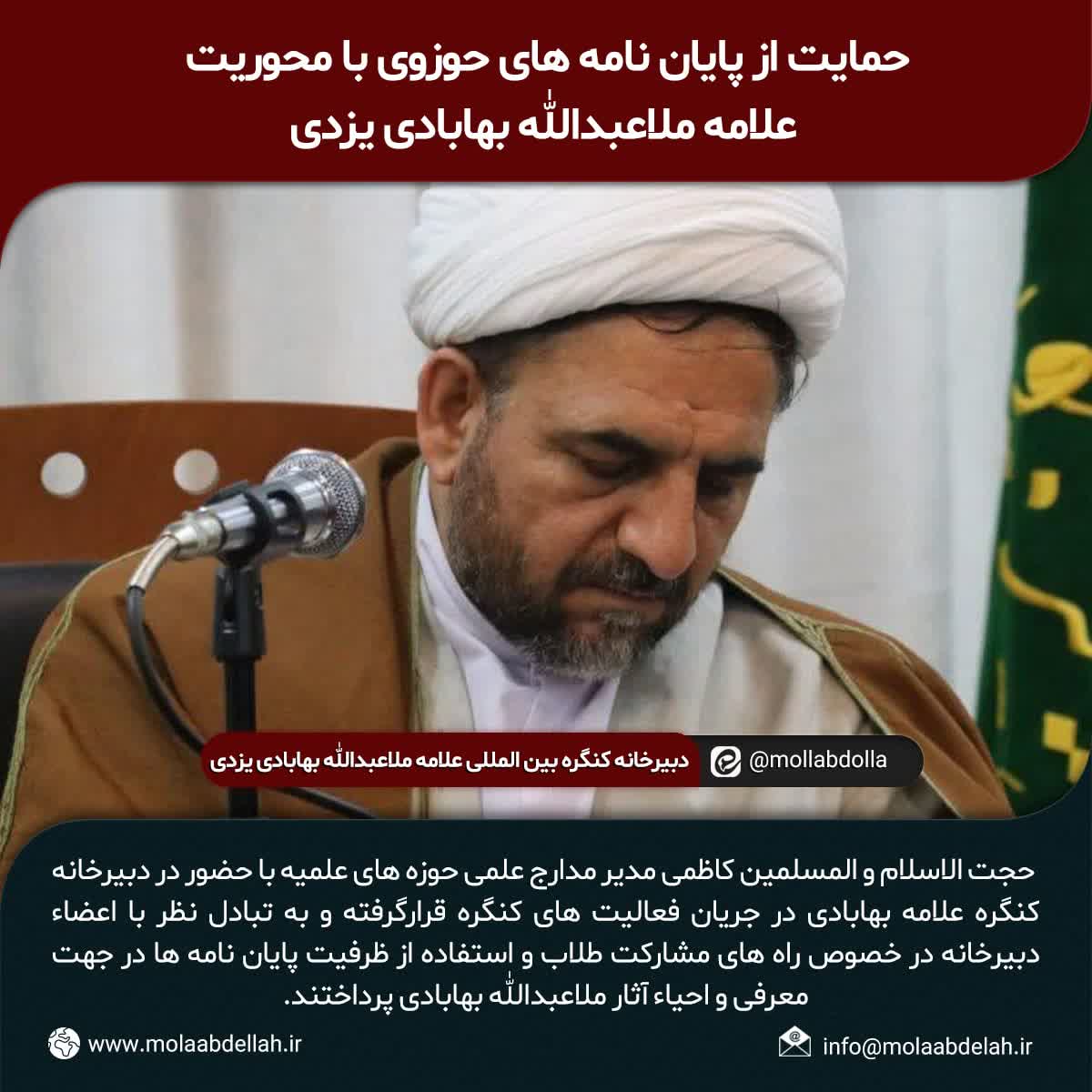 اعلام آمادگی مدیر مدارج علمی حوزه های علمیه در مورد اختصاص بخشی از پایان نامه های سطح چهار و سه طلاب به موضوعات پیرامون ابعاد شخصیت علامه بهابادی