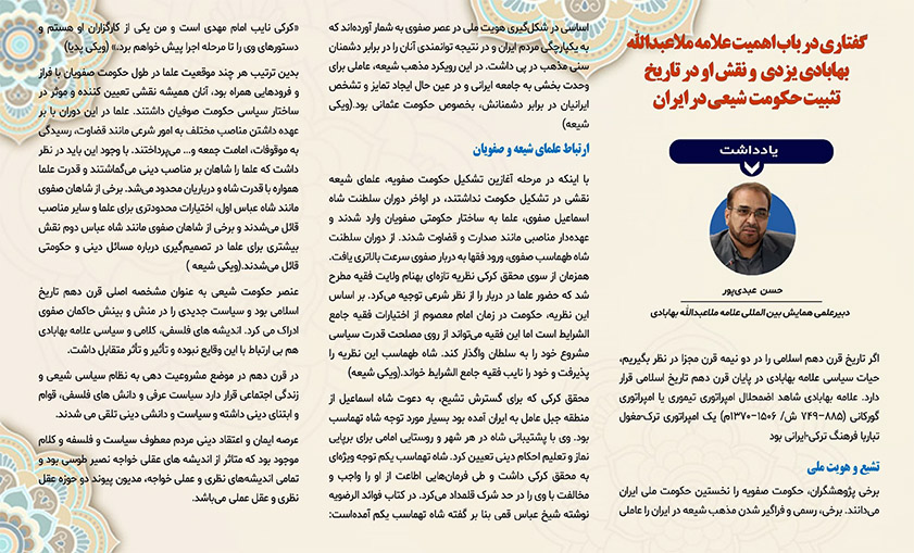 المنظومة الفكرية للعلامة ملاعبدالله البهابادي اليزدي