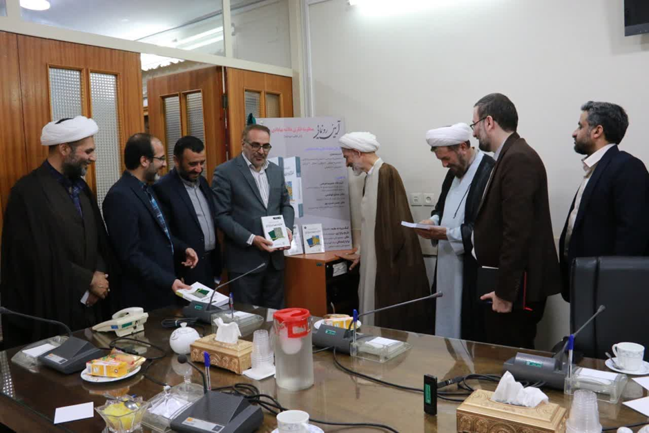 Picture: The Chairman of the International Congress of Allameh Bahabadi, Dr. Hasan Abdipour, presents their recent publications to the Head of the Supreme Assembly of Islamic Philosophy, Ayatollah Fayazi.