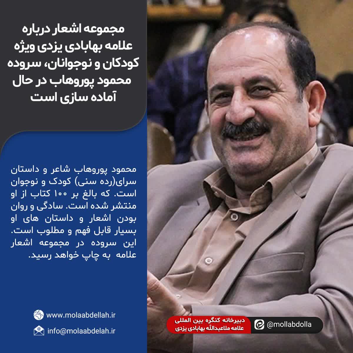 محمود پوروهاب شاعر و داستان سرای(رده سنی) کودک و نوجوان است. که بالغ بر ۱۰۰ کتاب از او منتشر شده است. سادگی و روان بودن اشعار و داستان های او بسیار قابل فهم و مطلوب است.