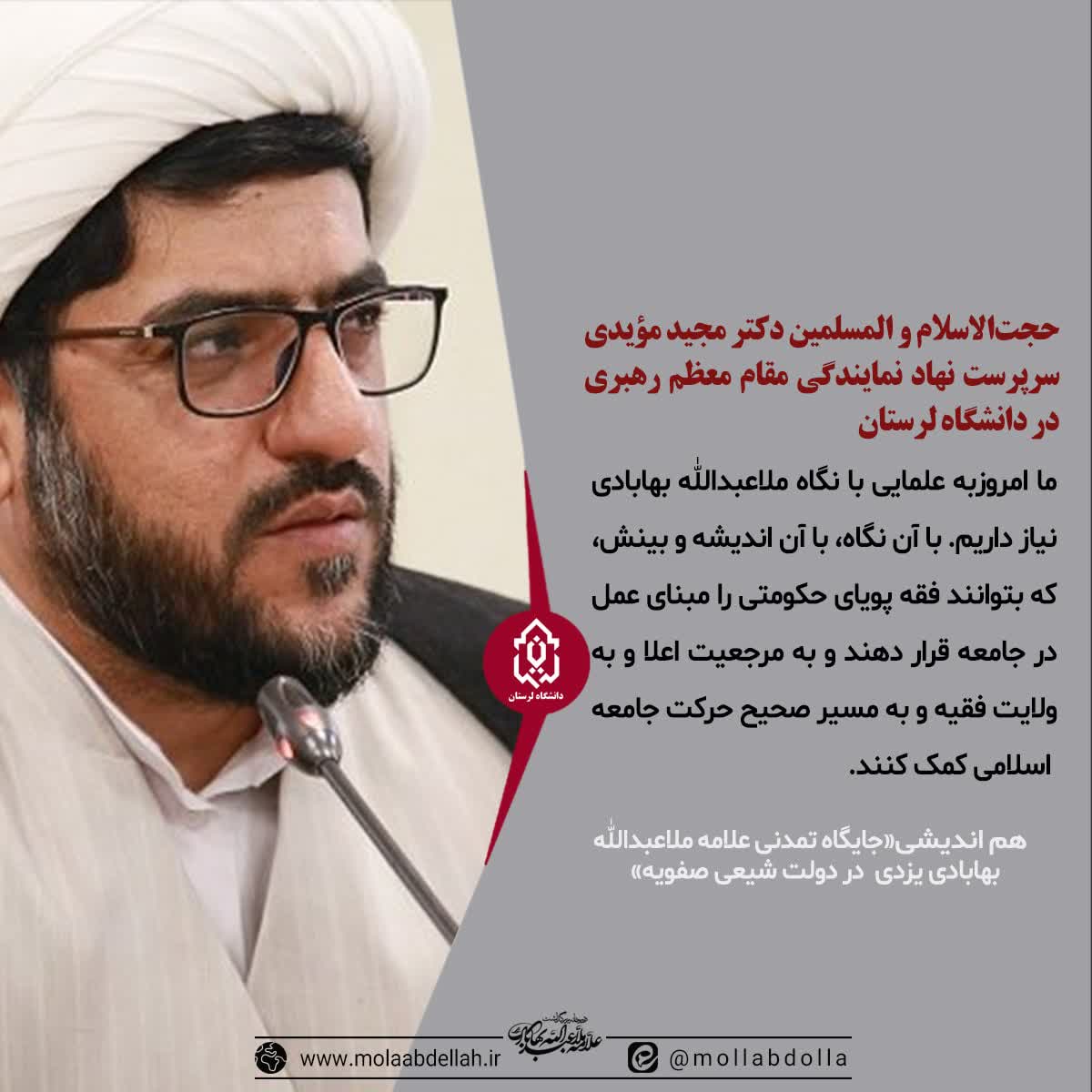 آنچه که امروز باید نسبت به آن توجه کنیم این است که در جامعهی امروز، ما به علمایی نیاز داریم، همانند ملاعبدالله بهابادی(ره) که توانستند مسیر انقلاب سلسلهی صفویه را به سمت و سویی اشارت و دلالت بدهند و مدیریت کنند که پس از قرنها جوامع شیعه به سمت تمدنسازی حرکت میکنند. همچنان که ملاعبدالله بهابادی این سنگبنا را گذاشت، امروز هم باید علمایی از بدنهی حوزه در بطن جامعه حضور مؤثر عملیاتی داشته باشند، مبدع باشند، نوآور باشند، در این گیرودار بگو مگوها خودشان را گرفتار نبینند، اهل انقلاب باشند، بتوانند درساخت مبانی اقتصاد اسلامی ورود کنند، بتوانند برگرفته از تعالیم ائمهی اطهار(ع) سیاست را خصوصا در اوضاع و احوال امروز که هر کسی خودش را به عنوان یک تئوریسین و نظریهپرداز مطرح کرده و به طور غیرصحیح، با استفاده از گزارههای دینی و ادبیات فقهی، بخشی از مردم را به سمت خودش و به سمت انحراف حرکت میدهد. از این روی به کسانی اندیشمندانی نظریه پرداز نیاز داریم تا با بهرگیری از منابع وحیانی بتوانند علوم اسلامی و انسانی ما را بازخوانی و پاسحگویی نیازه یا جامعه معاصر نمایند