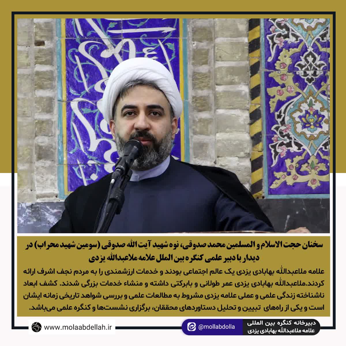 بیانات حجت الاسلام و المسلمین محمد صدوقی، نوه شهید آیت الله صدوقی (سومین شهید محراب) در دیدار با دبیر علمی کنگره بین الملل علامه ملاعبدالله یزدی: